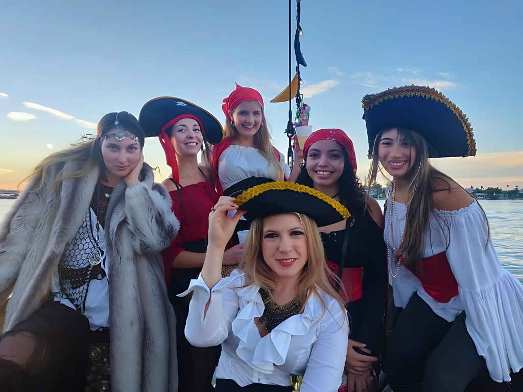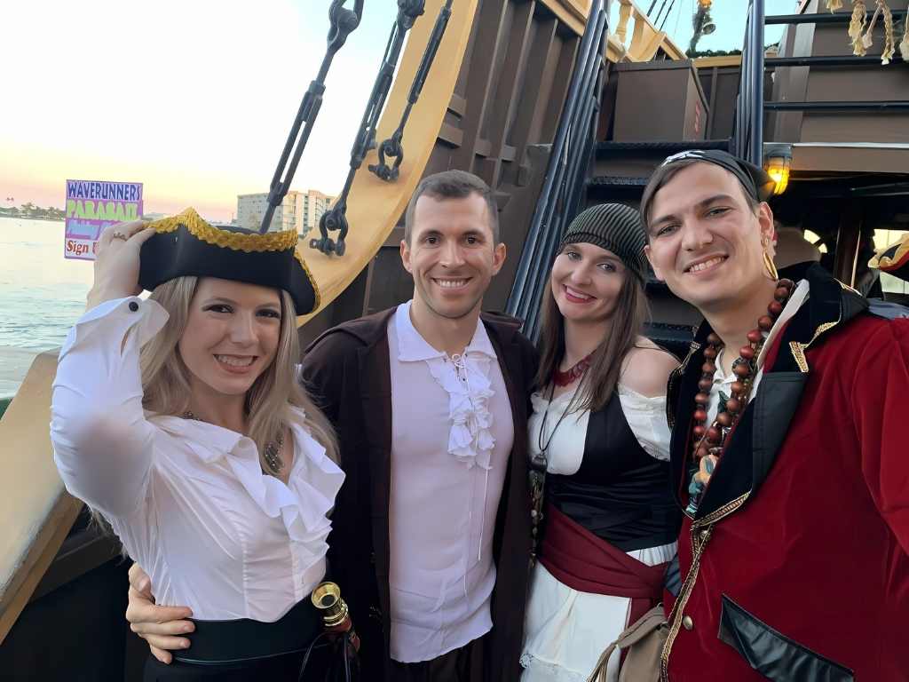 The ship embarks daily, but if you want to host your own pirate adventure you can book the entire ship like we do. Although costumes are technically optional, we make it a rule that if you join our pirate party, you’re going to dress like one! The live music and gorgeous views provide the perfect ambience, and everyone dressing up brings it all together.
