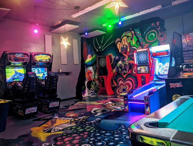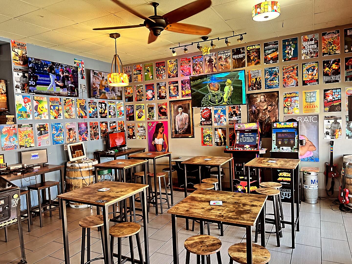 My favorite one from this list, Reboot, is the most immersive of all the Tampa Bay barcades. Located on the outskirts of downtown Dunedin, it is a one of a kind spot that draws in customers from all over the Tampa Bay area. It is deceptively ordinary on the outside, but as soon as you enter the bar, you are greeted with a blast of colorful neon lights and video game paraphernalia lining the walls. Not only does it have an entire room dedicated to Pinball machines, and over 30 timeless arcade games, but Reboot also has modern video games systems available to play, including Xbox One, Playstation 4 & 5, Nintendo Switch, NG4, N.E.S., and Wii. They pride themselves on serving the best locally crafted, artisanal brewed beer, and offer wine on tap and sake for non-beer drinkers.