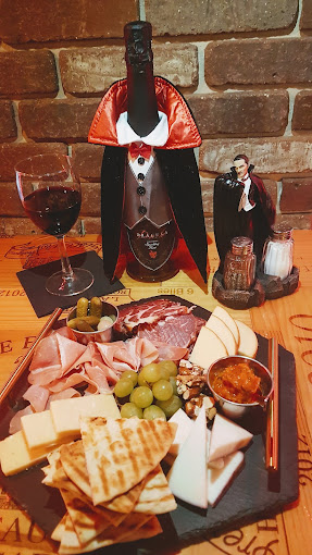 Dracula’s Legacy offers a variety of wines from around the world, with an emphasis on traditional Romanian wines. My go-to order is almost always their Romanian Wine Flight, which includes a glass of their Feteasca Negara (red), Feteasca Regala (white), and a glass of rosé. These wines come from grape varieties native to the Republic of Moldova and Romania, and I’ve seen them please both wine connoisseurs and wine newbies alike!
