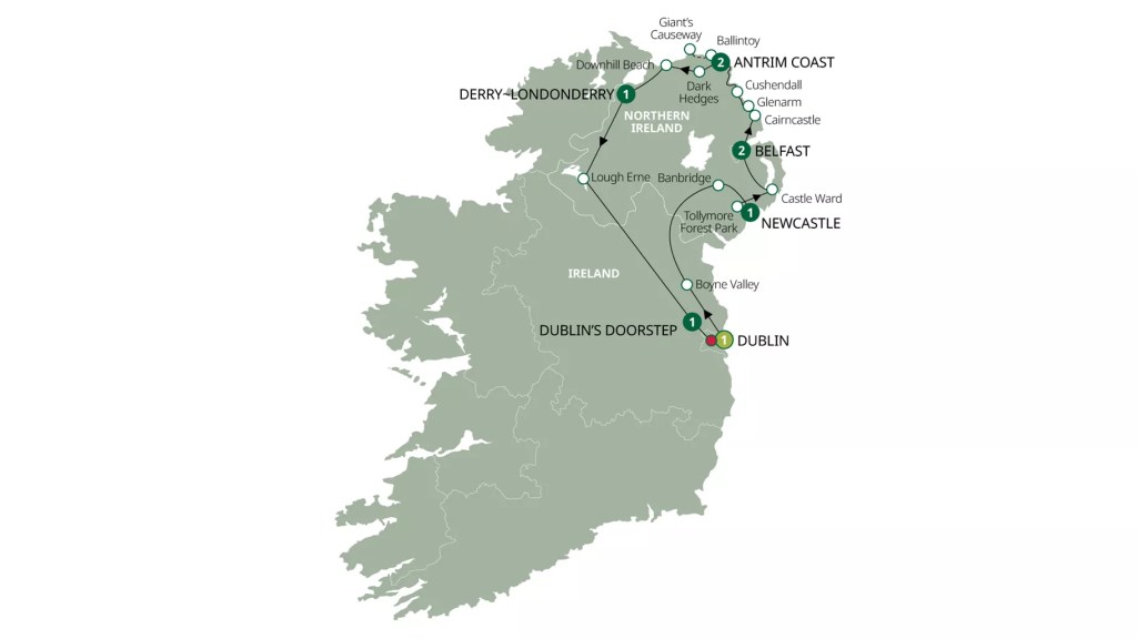 Once you’re done exploring, you’ll head south along the banks of Lough Erne in Fermanagh, before reaching one of our historic properties on Dublin’s Doorstep for your last night’s stay.